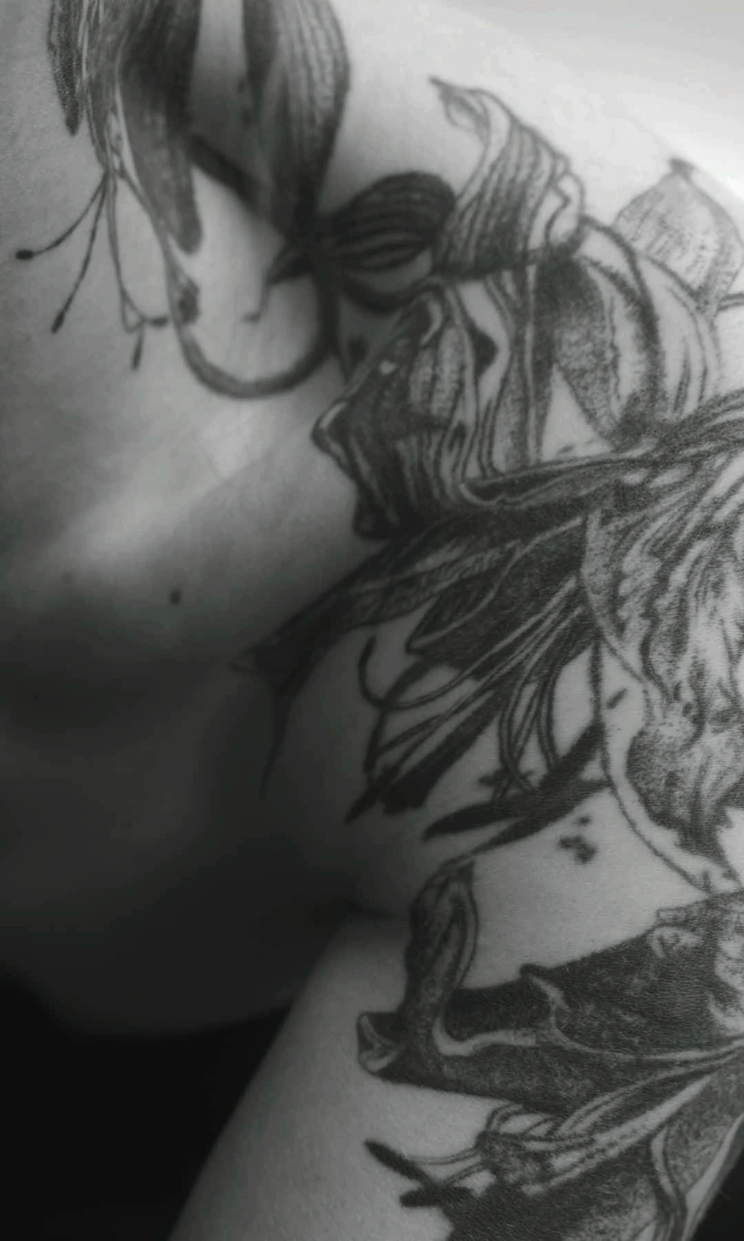 Étude du lys après sa période de floraison. Le dessin cherche à restituer la perte de tension du pétale et la torsion du pistil. Le trait reste précis, pour rendre la matière sans la dramatiser. Le jeu entre lignes sèches et traces plus diffuses évoque la lente désorganisation de la structure florale.