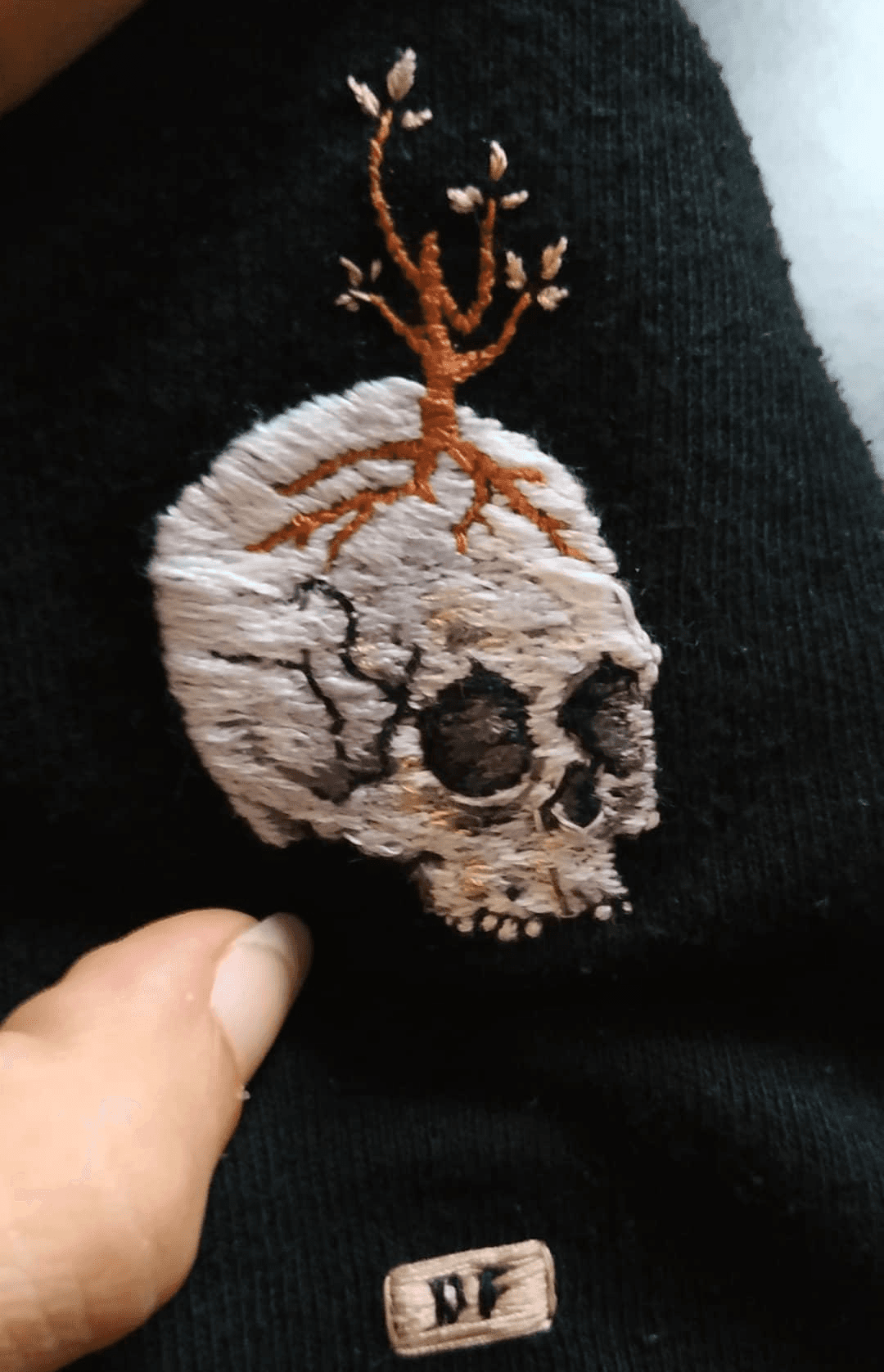 Dans la réalisation de Rena, il y a eu un mélange de tendresse profonde, de soin obsessionnel et de gratitude. Elle incarne quelque chose d’intime : le souhait de transmettre un amour tangible, à travers le geste lent de la broderie. C’est un objet affectif, né du lien entre deux personnes, dont le fil ne s’usera pas.