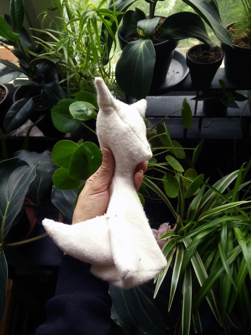 Ce doudou a été pensé pour une petite fille précieuse. Rena n’est pas un simple jouet, mais un objet de réconfort et de lien, conçu comme un talisman doux et discret, une présence à la fois familière et forte. Son regard, légèrement en coin, lui donne une expression singulière — à la fois attentive et libre.